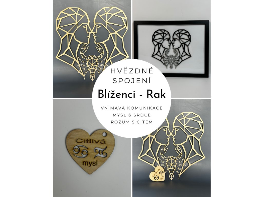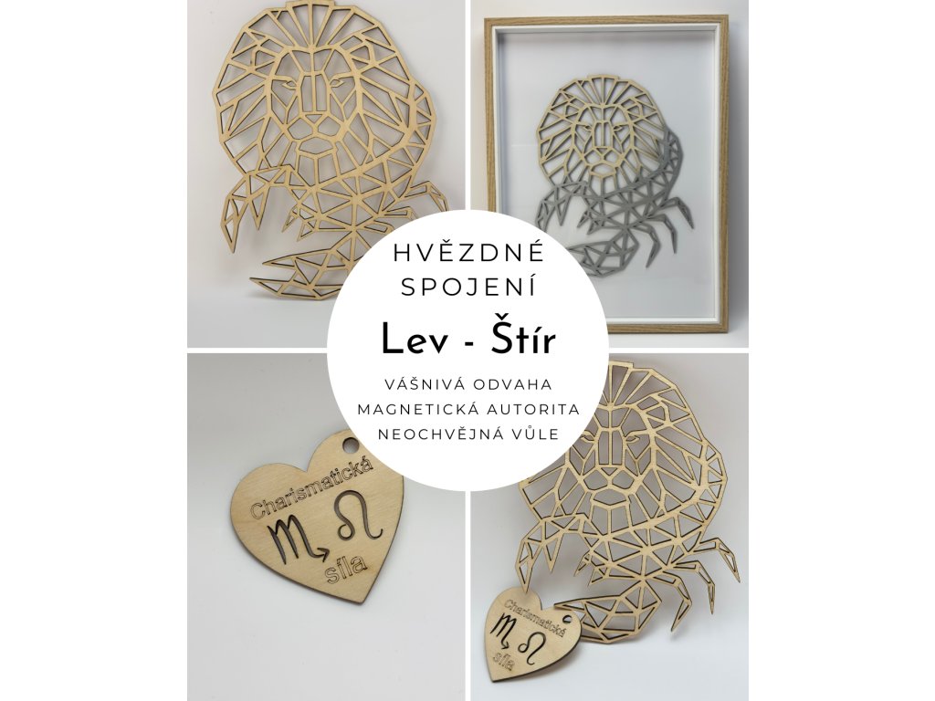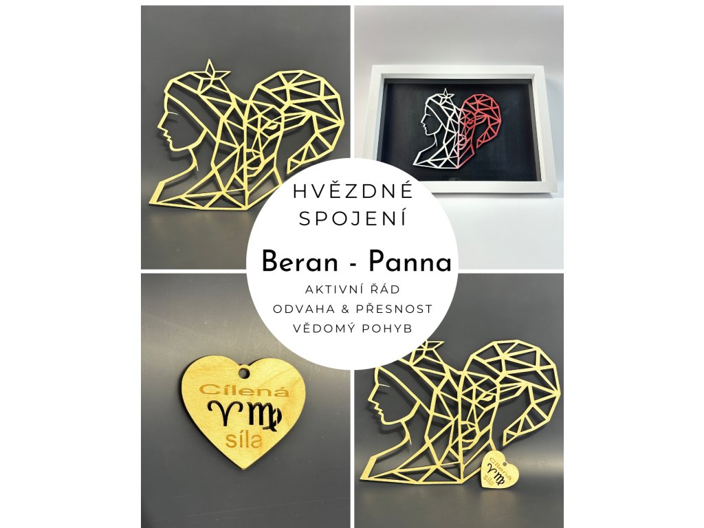 Obraz je vyřezán laserem do kvalitní překližky a může být doplněn o rám nebo vonné srdíčko se symboly znamení.