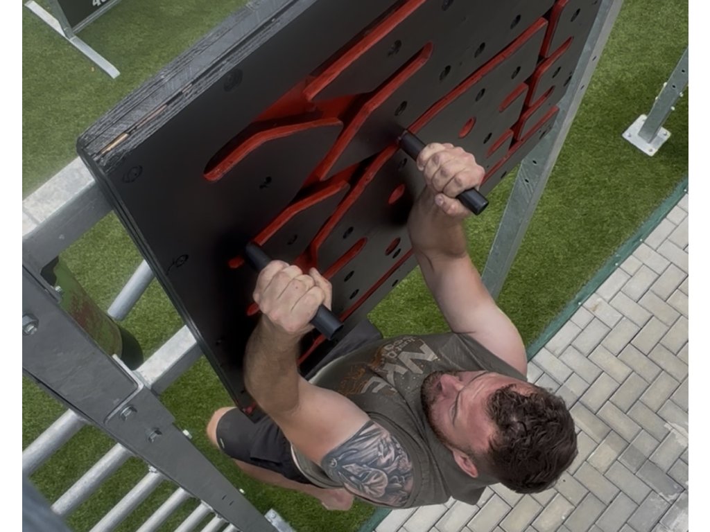 Pegboard v jednom: otoč kolíky, zapíchni je do otvorů a rázem máš plnohodnotný pegboard pro brutální trénink paží a zad.